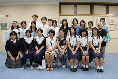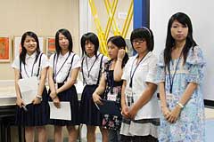 神戸空襲を記録する会代表の中田政子さんを取材した映像作品「忘れない−−1945・神戸」を制作した、須磨友が丘高等学校放送委員会のみなさん。これに先立ち、ラジオドラマ「潮騒の記憶」も上演されました。
