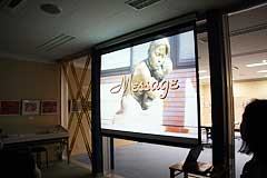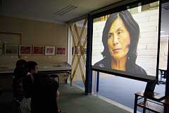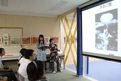 今日の「夏の親子企画」でも空襲体験を語ってくれた二瓶治代さんのお話を軸に構成した、昭和女子大学付属昭和中学校放送部による「平和への祈り」(上左)と、東京大空襲の仮埋葬地を撮り続ける写真家・広瀬美紀さんを取材した同昭和高等学校放送部による「Message」(上右)。会場には、広瀬美紀さんも駆けつけてくれました。