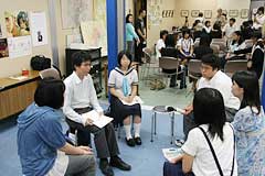 最後は3つのグループに分かれての「交流の時間」となり、自己紹介や作品制作の実際、他校作品の感想など、活発に意見が交換されました。