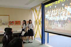兵庫県からは兵庫県立須磨友が丘高等学校放送部のみなさんが、東京からは昭和女子大学付属昭和中学校・昭和高等学校放送部のみなさんが登場し、それぞれ神戸空襲、東京大空襲をテーマに制作した作品を上映。続いて長崎からは青少年ピースボランティアのみなさんによる、被爆地ナガサキをテーマにしたプレゼンテーションとグループの活動報告があり、また紙芝居で空襲体験を伝えている東京都立芝商業高等学校演劇部のみなさんも登場してくれました。