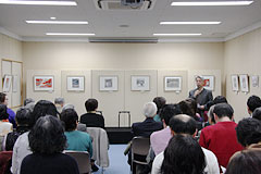 まず、司会・進行をつとめる山辺昌彦さん(戦災資料センター主任研究員)によるプログラムの紹介で始まりました。会場には、来館されて展示を見学されていた方々も含めて80名以上のみなさんが集まり、補助椅子を何度か追加するほどの盛況となりました。