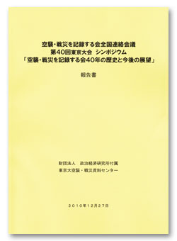 2010年8月21日に開かれた、空襲・戦災を記録する会全国連絡会議第40回東京大会シンポジウム「空襲・戦災を記録する会40年の歴史と今後の展望」の報告書が昨年末にできました。